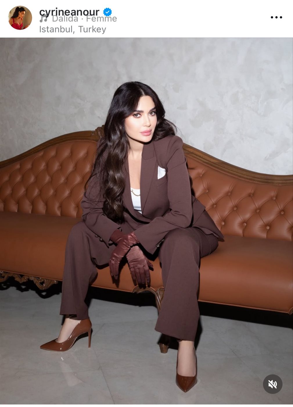 ظهرت النجمة سيرين عبد النور بإطلالة راقية في إسطنبول، حيث اختارت بدلة رسمية باللون البني الداكن مع قفازات أنيقة أضافت لمسة فخامة إلى اللوك.
