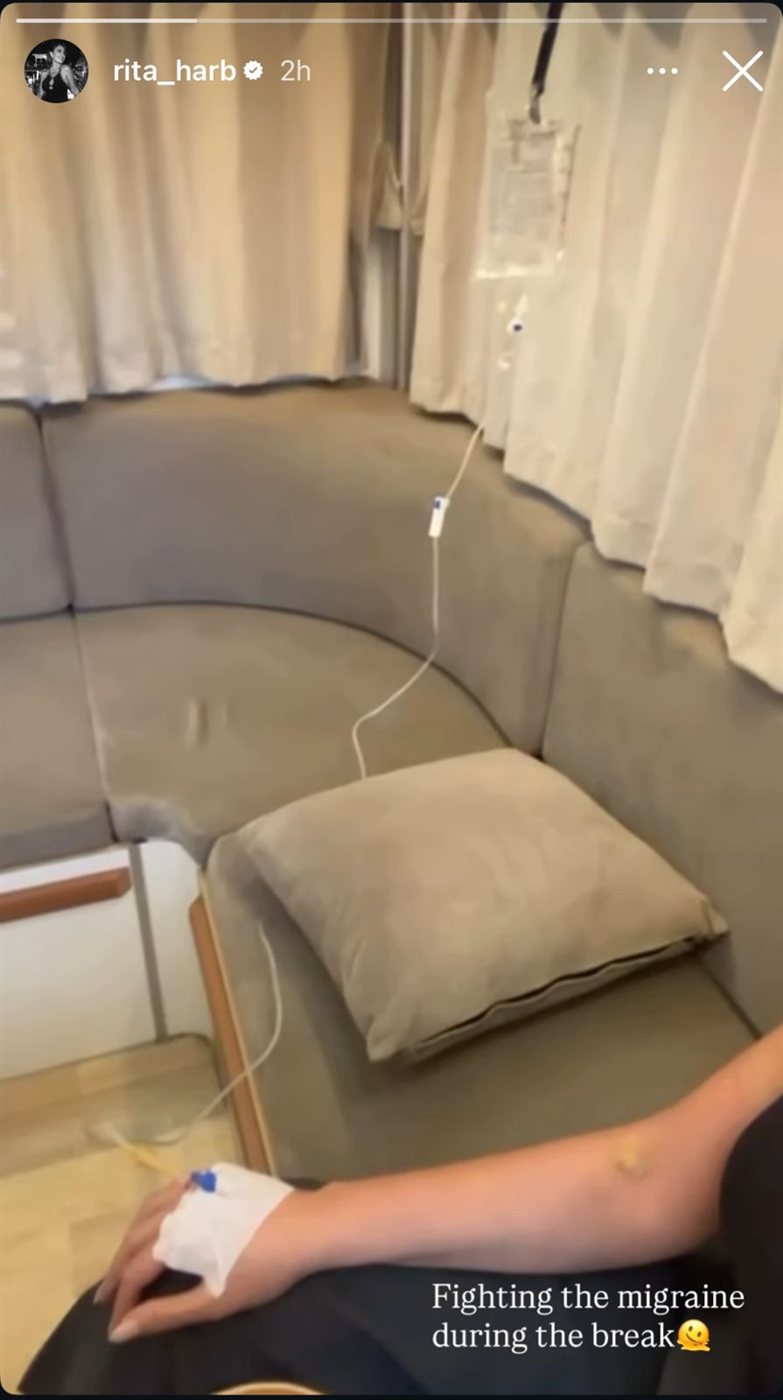 نشرت النجمة ريتا حرب عبر خاصية “الستوري” على حسابها في “إنستغرام” مقطعًا مصوّرًا ظهرت فيه وهي تتلقّى علاجًا عبر المصل الوريدي، خلال فترة استراحة من العمل.